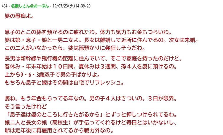 息子嫁が断っても断っても4人の孫を私に押し付けてくる。躾のなってない子供を預かるのはもう嫌なの。なのに高速を5時間も運転させて迎えに来させてまで預けようとするの